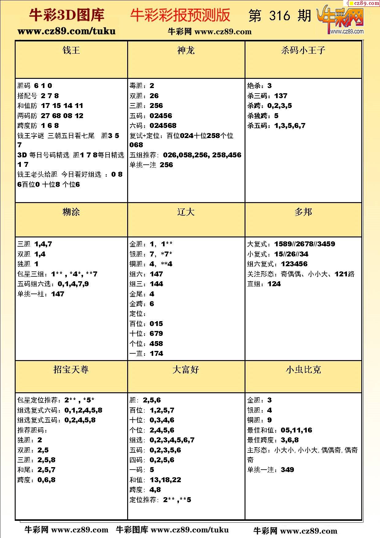 牛彩版3D预测彩报图25年316期打印版